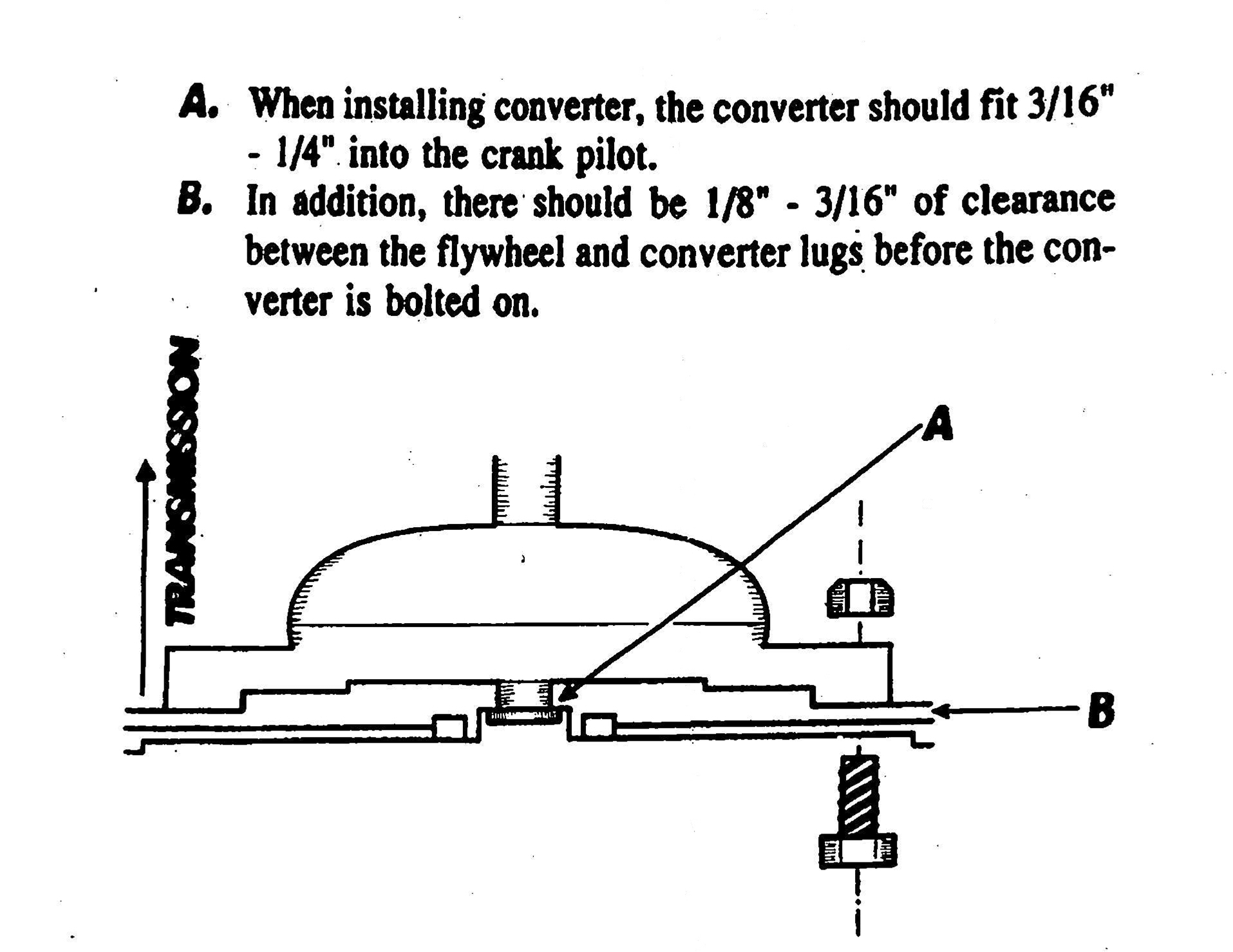 If the gap is beyond the recommended spec, you can add Grade 8 washers between the converter pads and the flexplate to make it work.